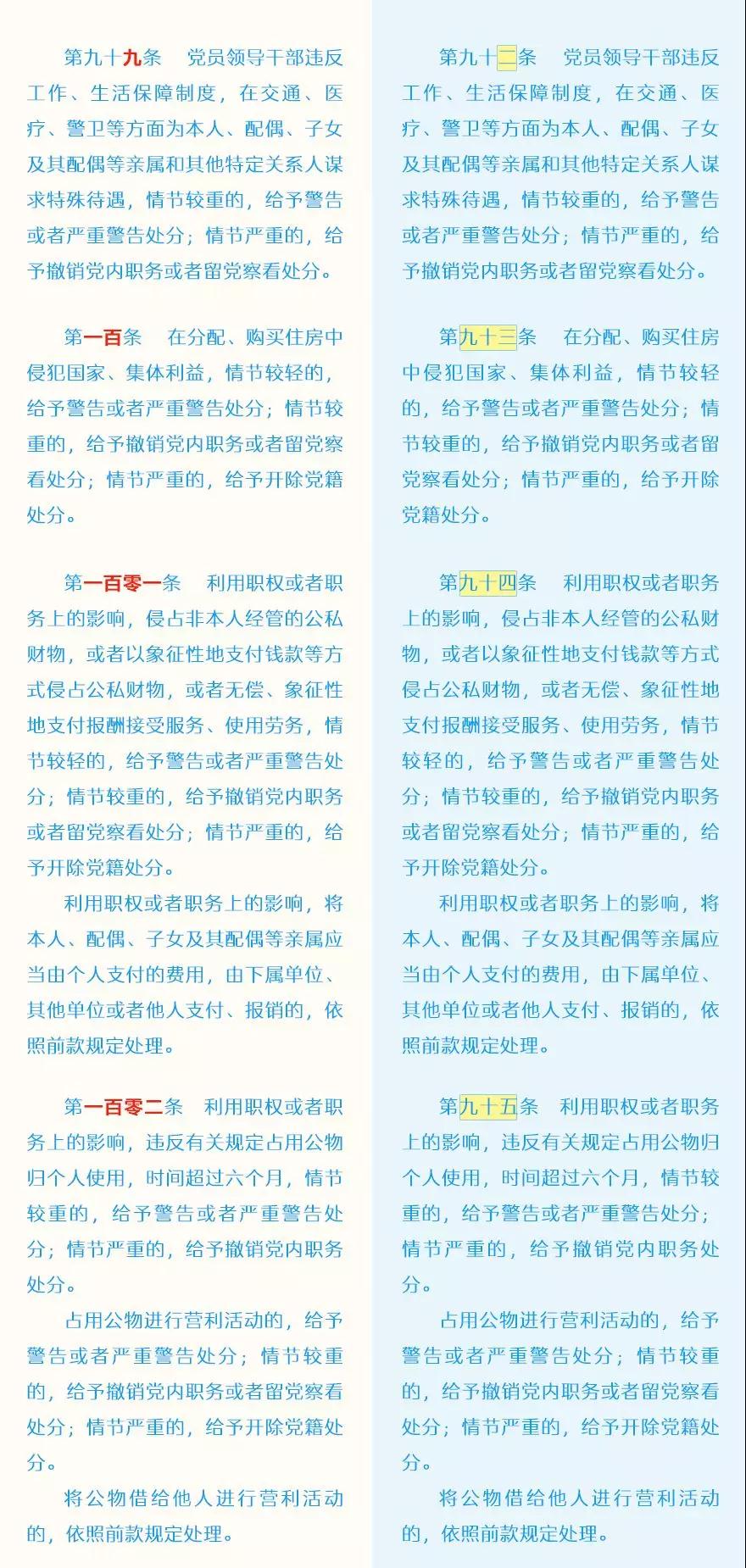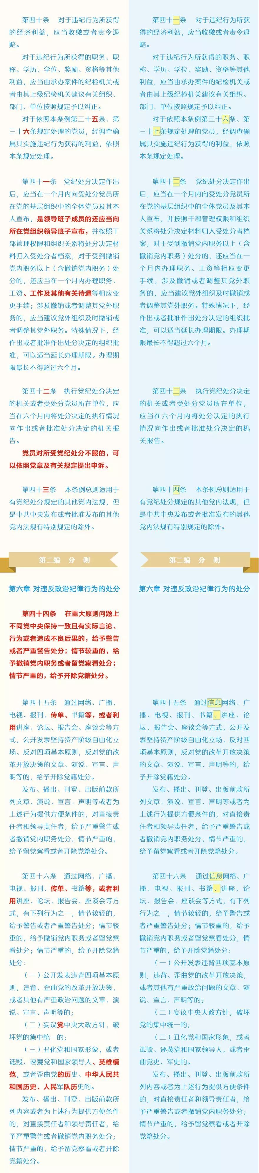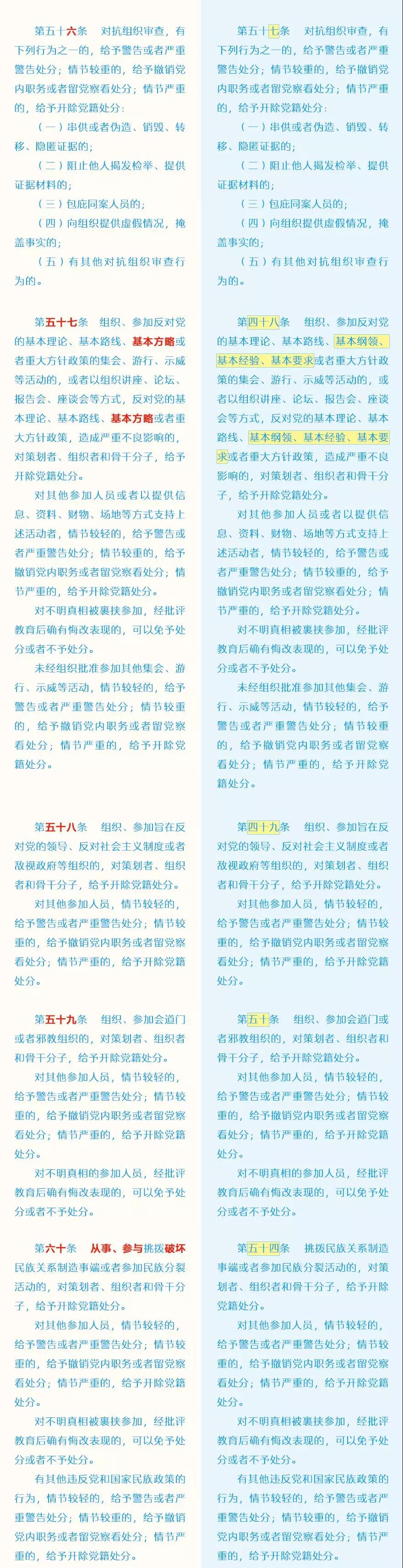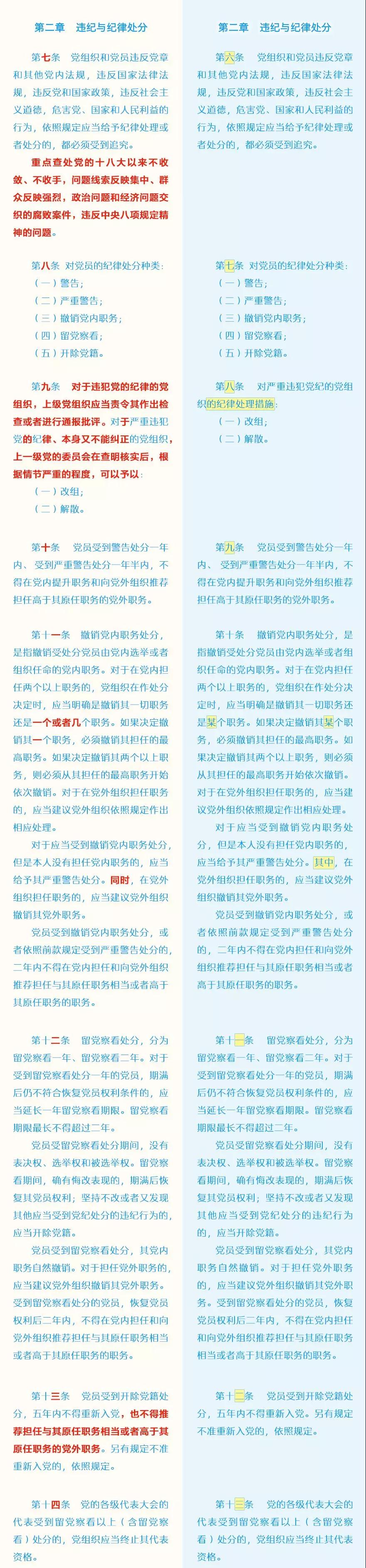 此次修訂的主要內(nèi)容包括哪些?這些變化背后體現(xiàn)了怎樣的理念?集團紀(jì)委引用了中央紀(jì)委國家監(jiān)委網(wǎng)站的“《中國共產(chǎn)黨紀(jì)律處分條例》修訂前后最全對照表”,幫助大家讀懂新修訂的黨紀(jì)處分條例。
