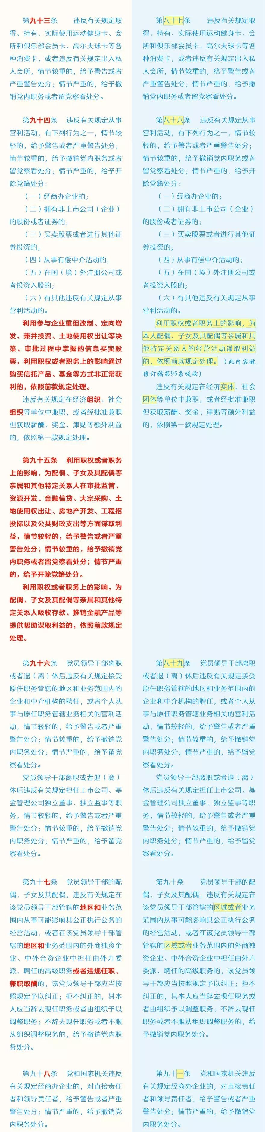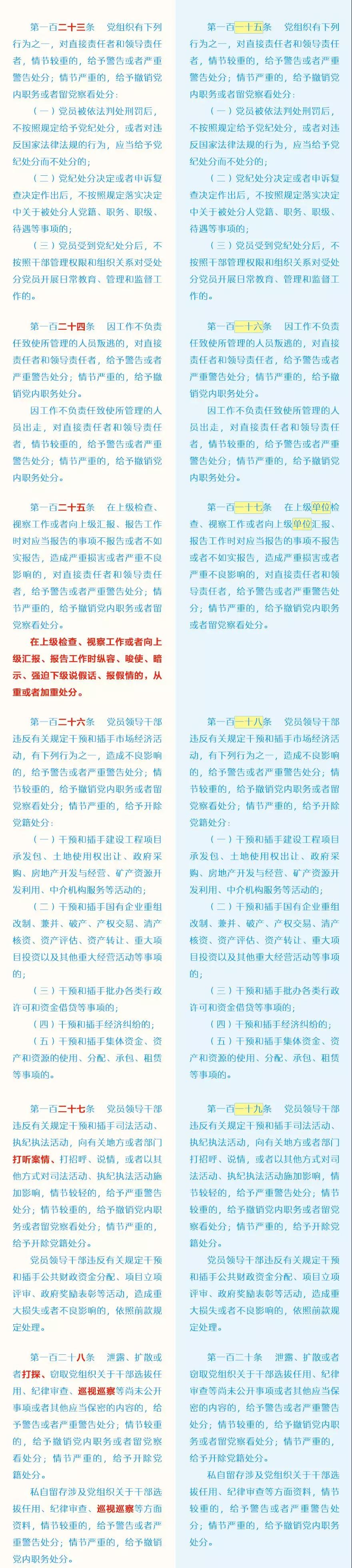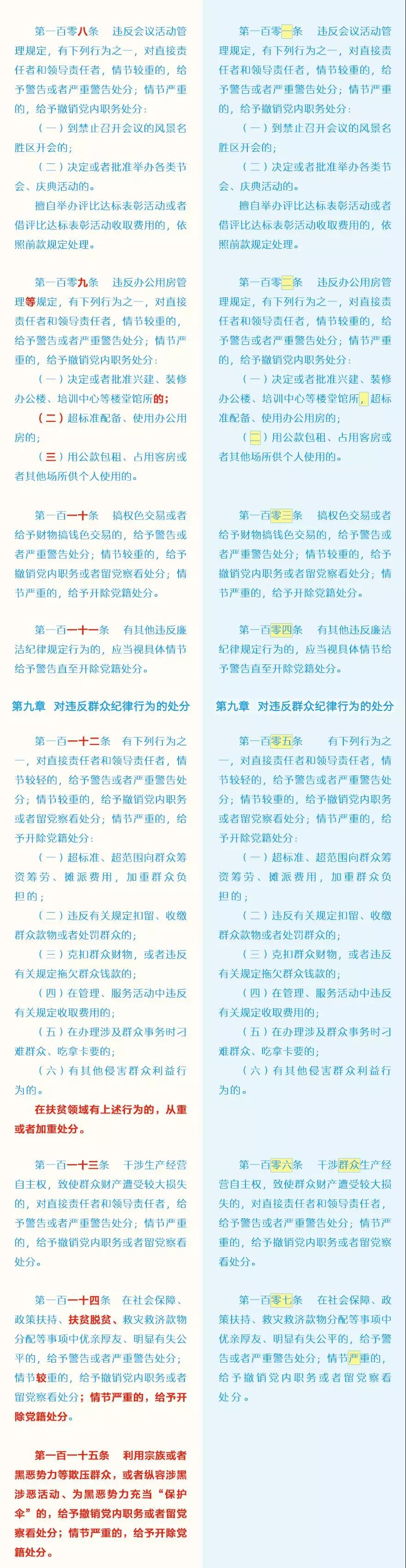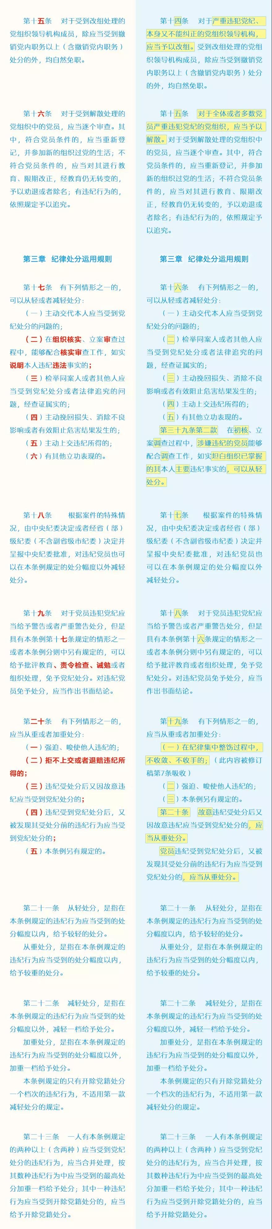 此次修訂的主要內(nèi)容包括哪些?這些變化背后體現(xiàn)了怎樣的理念?集團紀(jì)委引用了中央紀(jì)委國家監(jiān)委網(wǎng)站的“《中國共產(chǎn)黨紀(jì)律處分條例》修訂前后最全對照表”,幫助大家讀懂新修訂的黨紀(jì)處分條例。