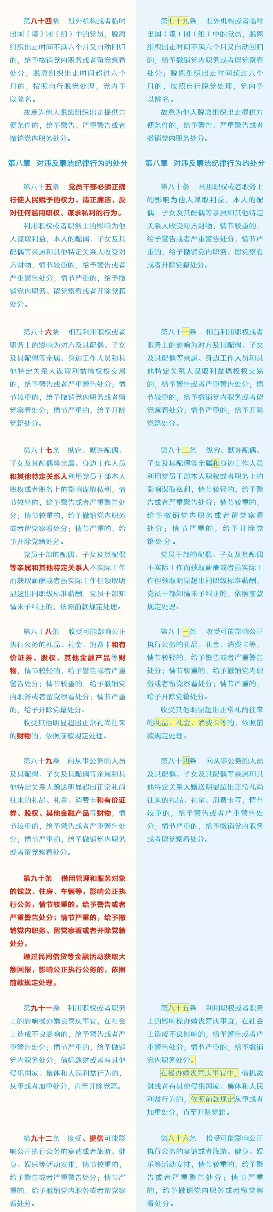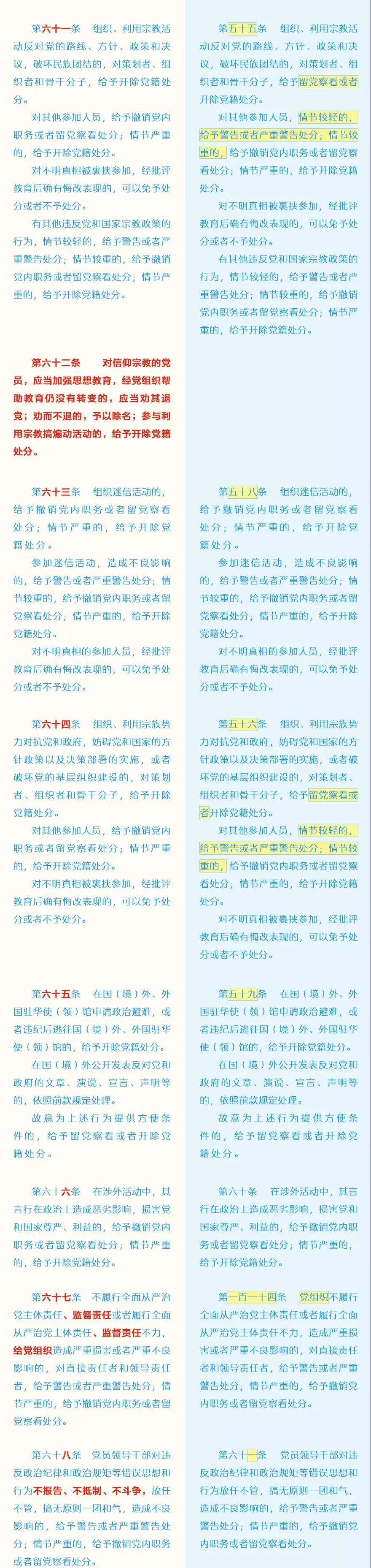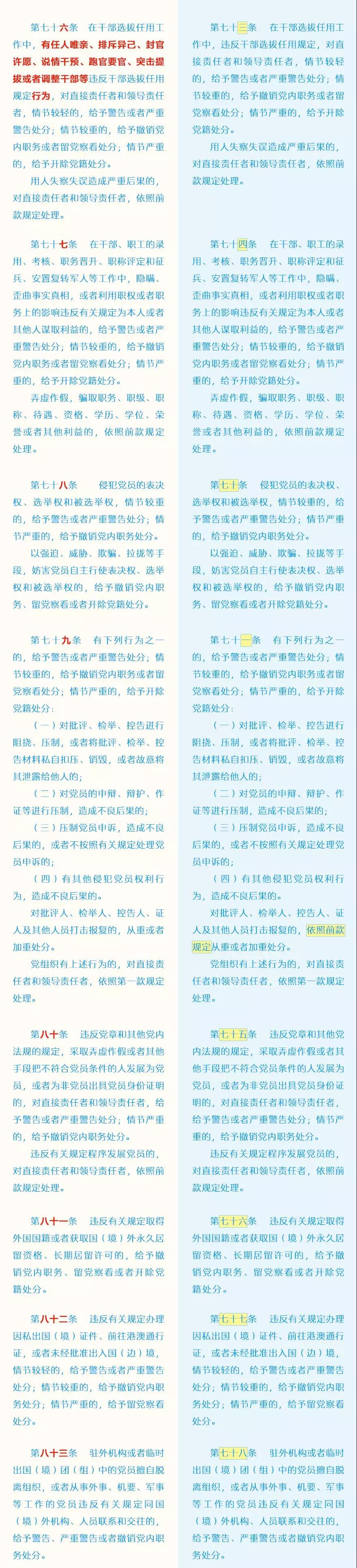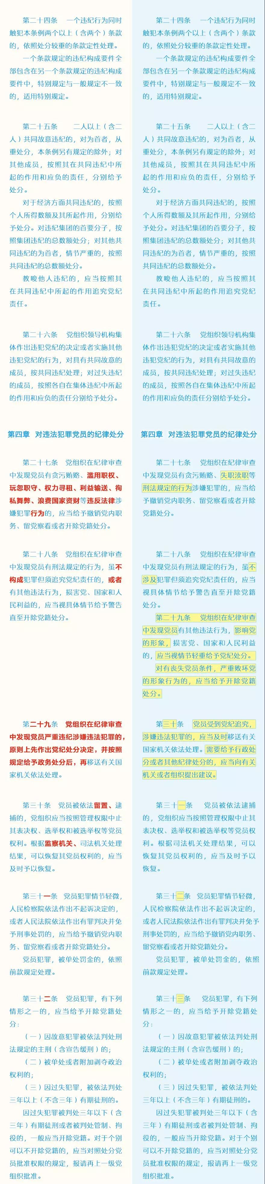 此次修訂的主要內(nèi)容包括哪些?這些變化背后體現(xiàn)了怎樣的理念?集團紀(jì)委引用了中央紀(jì)委國家監(jiān)委網(wǎng)站的“《中國共產(chǎn)黨紀(jì)律處分條例》修訂前后最全對照表”,幫助大家讀懂新修訂的黨紀(jì)處分條例。