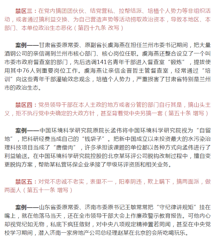 為強(qiáng)化對《中國共產(chǎn)黨紀(jì)律處分條例》的學(xué)習(xí),學(xué)先一步,學(xué)深一層,學(xué)用結(jié)合,集團(tuán)紀(jì)委引用中央紀(jì)委國家監(jiān)委網(wǎng)站的內(nèi)容,帶領(lǐng)大家從“典型案例”中深刻領(lǐng)會(huì)《條例》修訂的重大意義,積極用《條例》武裝頭腦、筑牢防線,進(jìn)一步增強(qiáng)紀(jì)律意識(shí)、規(guī)矩意識(shí)。下面,就讓我們通過案例看一看這些不能觸碰的禁區(qū)!